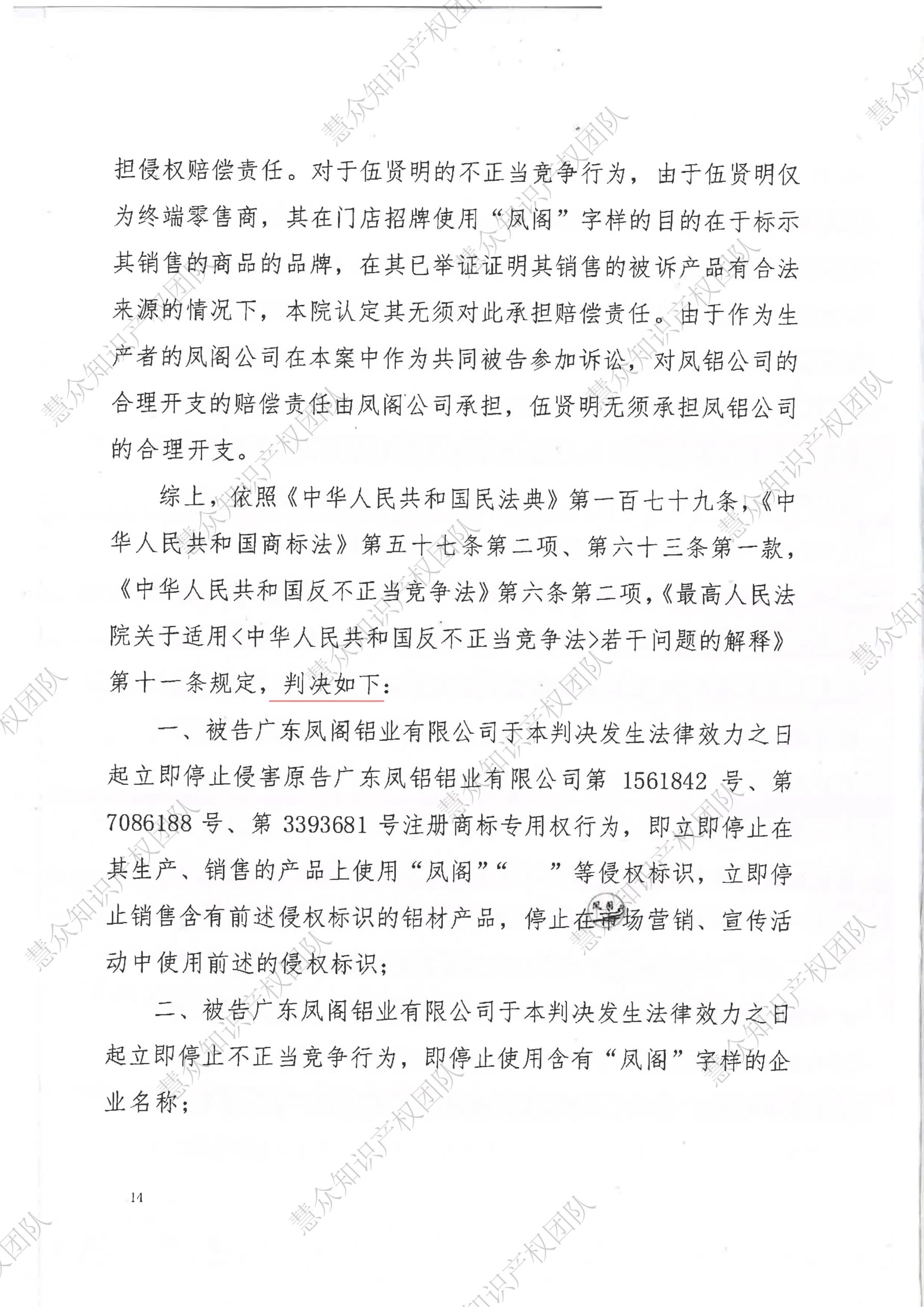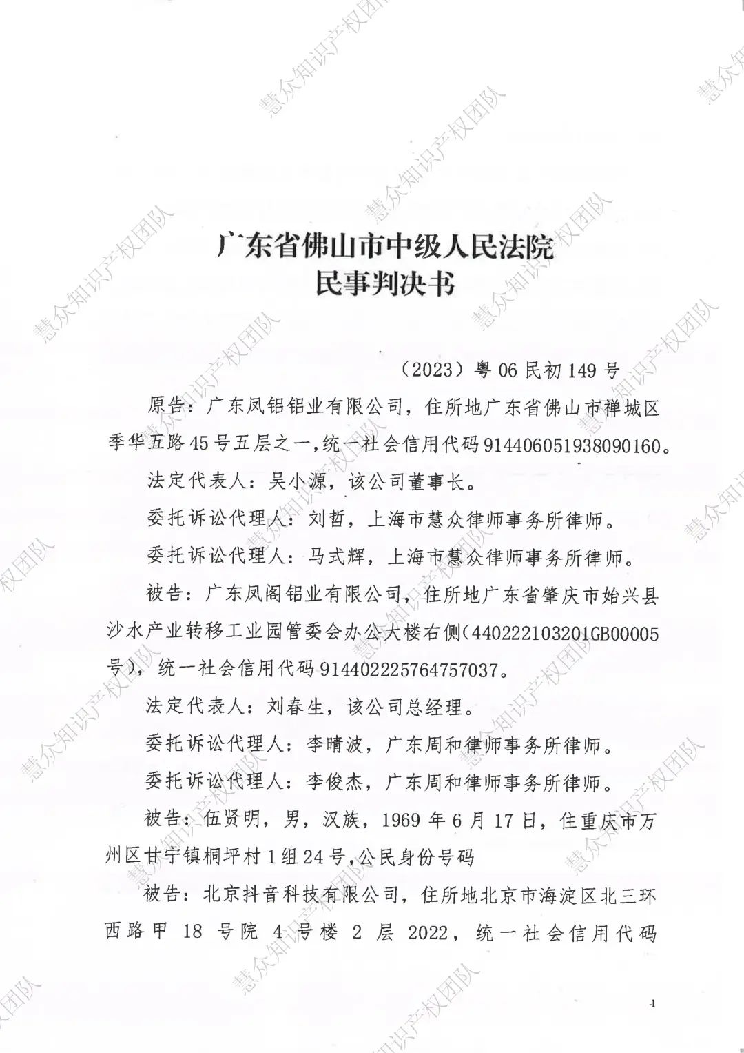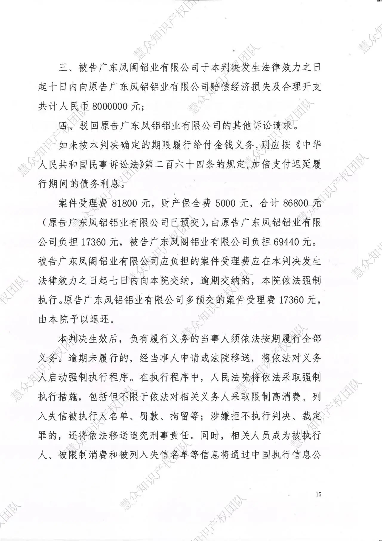 湖州判赔800万!辉知队代理“凤铝”商标维权案胜诉